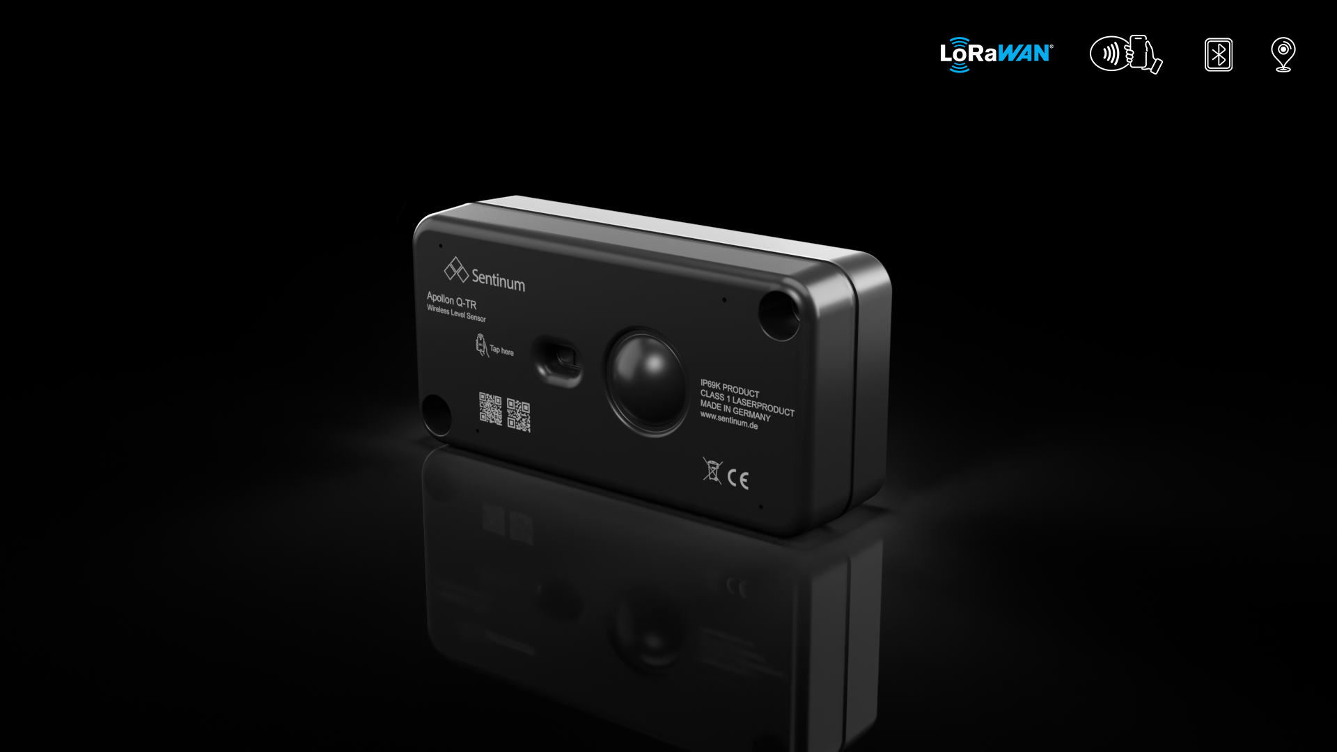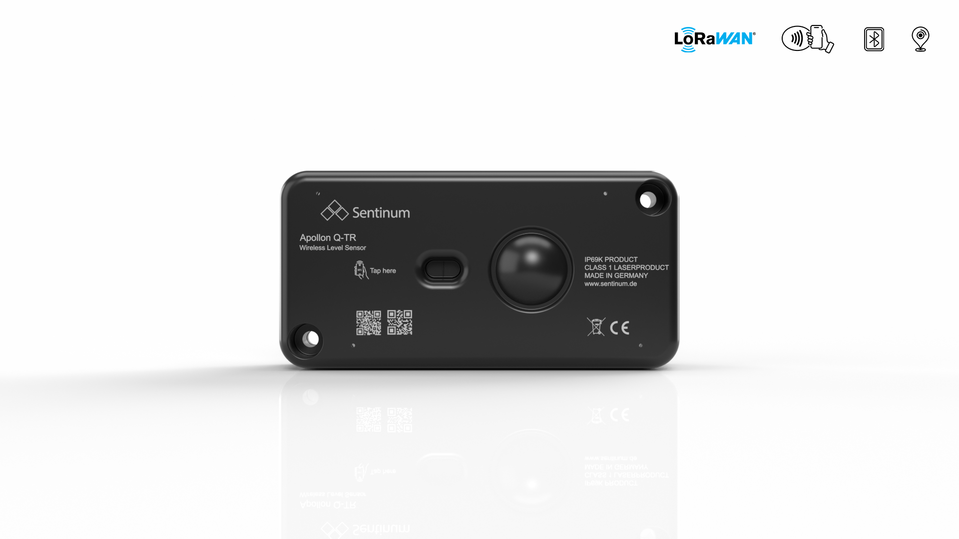 Sentinum Apollon-Q, drahtloser LoRaWAN®, Smart Waste Füllstand- und Distanzsensor, OPTIMIERTE SMART WASTE SOFTWARE, duales Messprinzip mit Radar für schwache Reflektoren und Laser ToF Sensortechnologie mit Multitarget Erfassung, Beschleunigungssensor für Vandalismus- und Öffnungsdetektion, IP69k, 2k-Dichtung, -30°C bis 75°C, konfigurierbar über NFC, wechselbare Batterie.Optimierter Sensor für Smart Waste