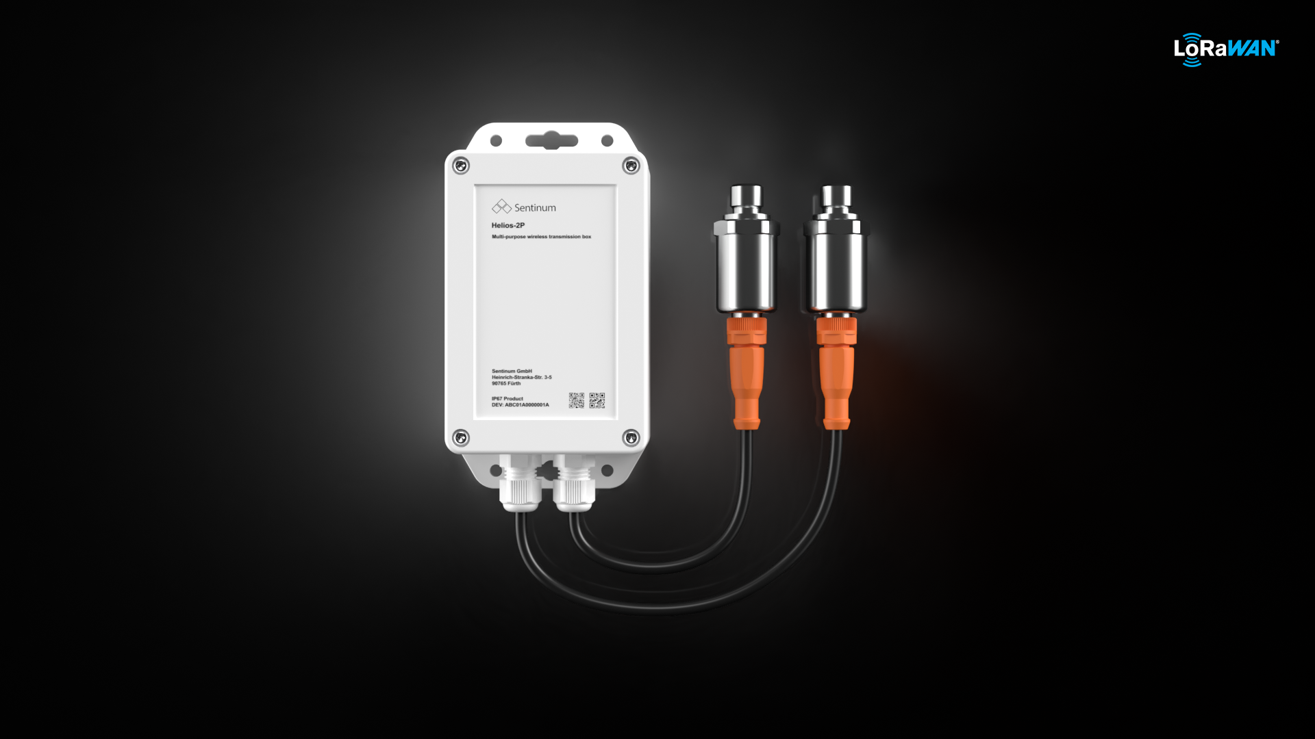 Sentinum Helios LoRaWAN®, drahtlose multipurpose Anschlussbox ausgestattet mit zwei Drucksensoren für Differenzdruckmessung, Kabeldruchführungen, ca. 1,5m Kabel, Drucksensoranschluss 1/4 Zoll AG, 0-10 bar in der Standardausführung, weitere Drucksensoren und Messbereiche auf Anfrage oder Zubehör, für flüssige und gasförmige Medien bis 135°C Medientemperatur, IP67, Gehäuse ABS/PC, Konfiguration über NFC, wechselbare Batterien (4 AA Zellen).Eigenschaften Drucksensor