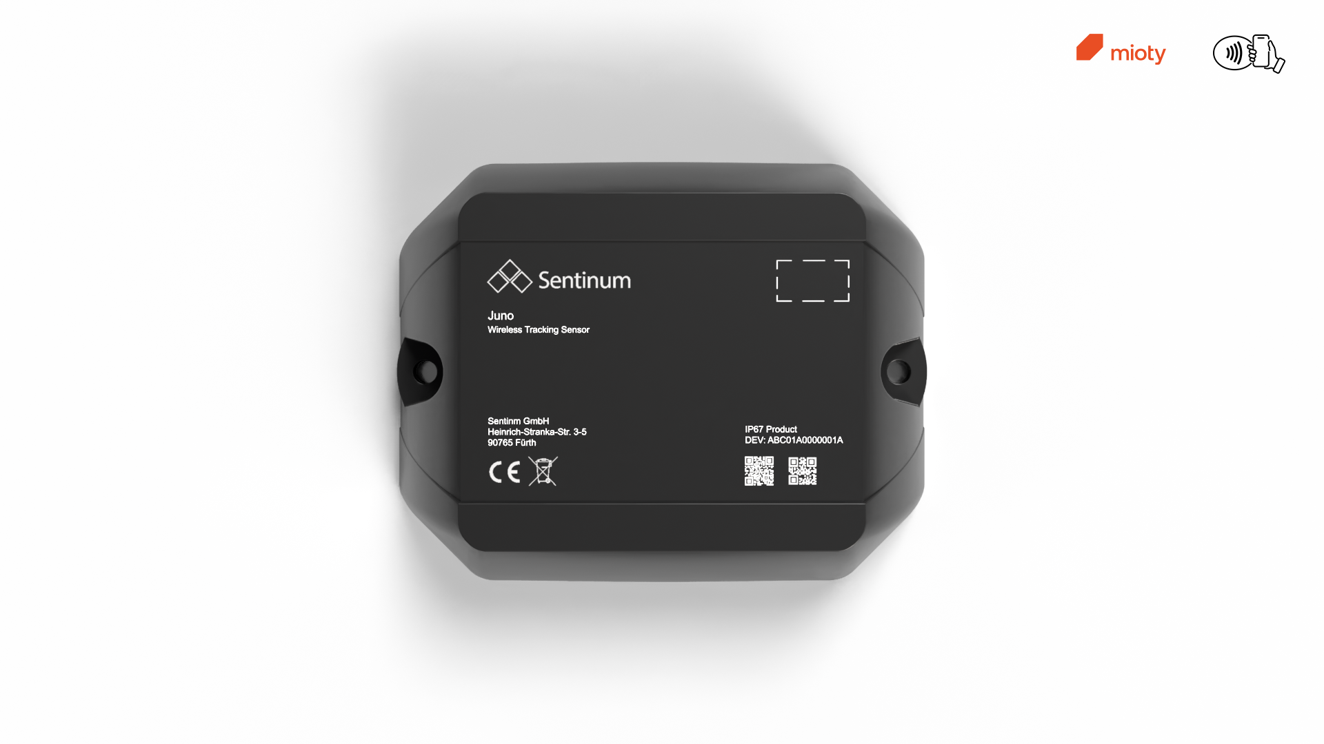 Sentinum Juno GNSS Tracker, drahtloser mioty® Tracker, Lokalisierung über GNSS Scan oder WIFI Scan, IP67, -30°C bis 75°C, konfigurierbar über NFC und BLE, Accelerometer für unterschiedliche Tracking und Übertragungsmodi, wechselbare Batterie.Eigenschaften