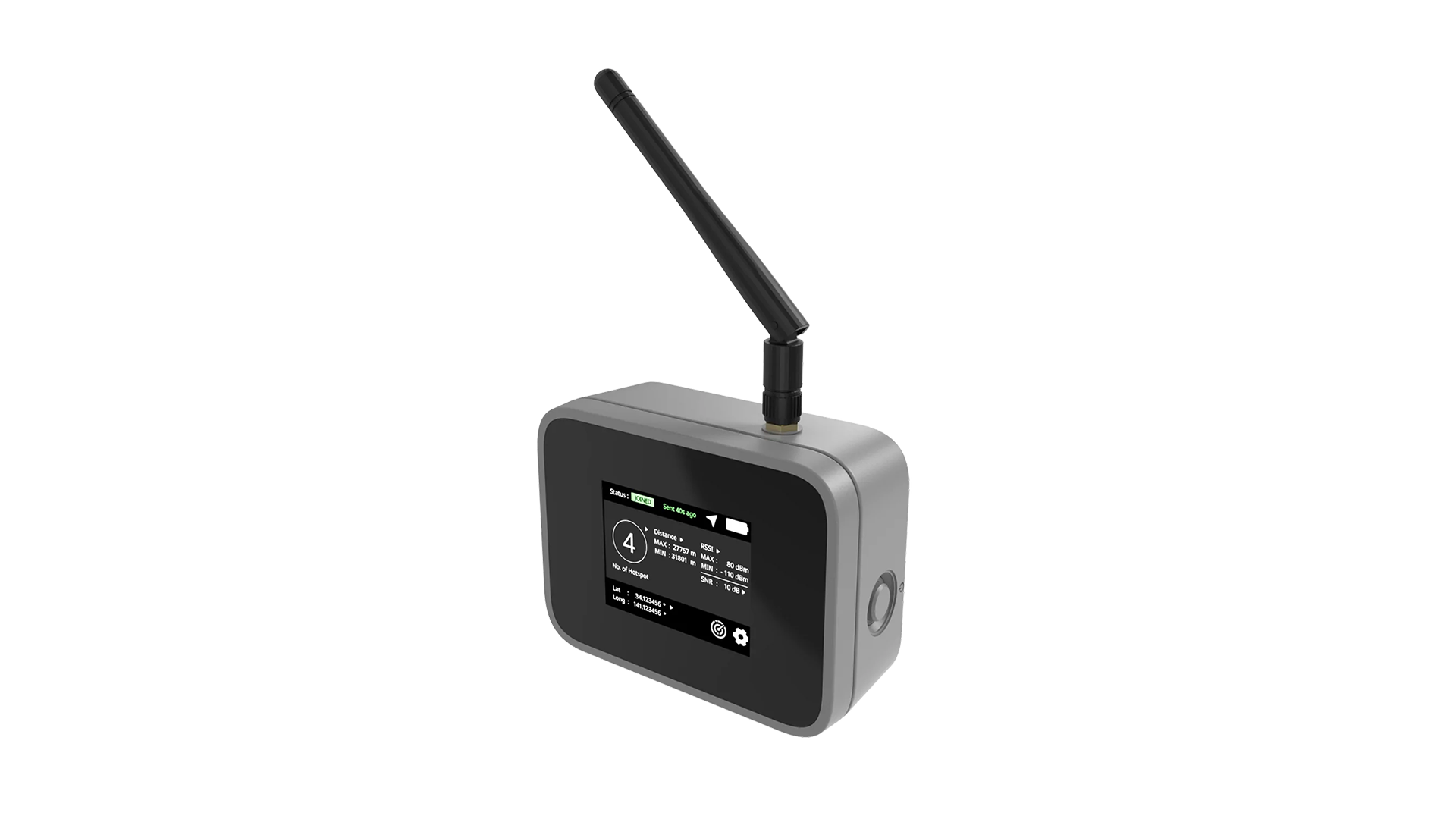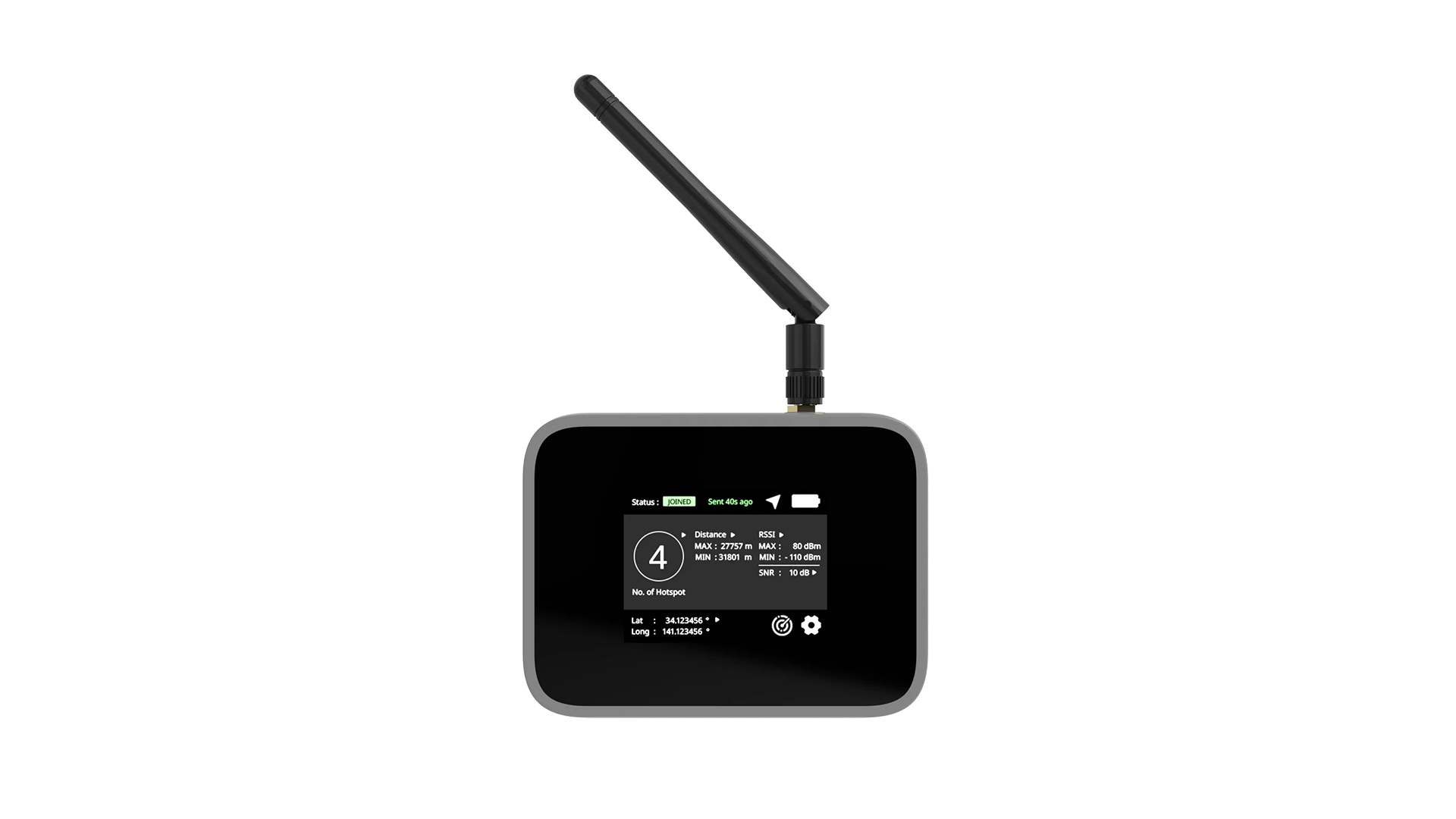 - Zeigt die minimale und maximale Entfernung zu Gateways in Reichweite an